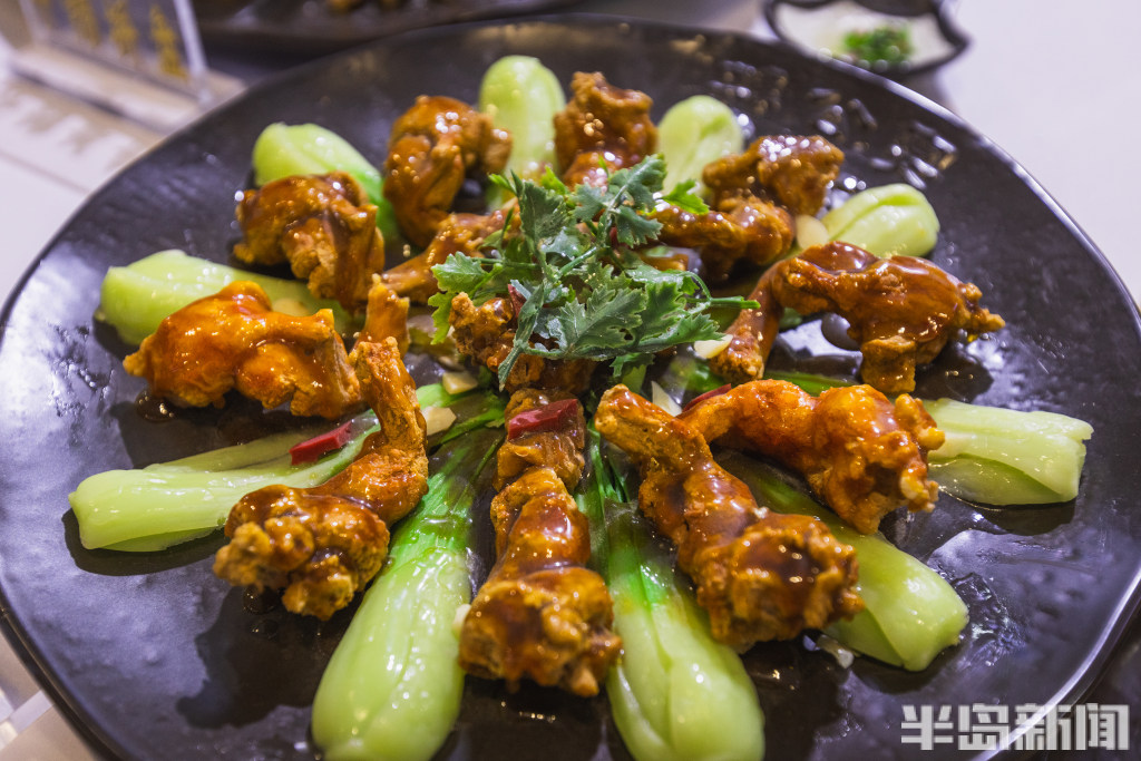 鲜酿盘丝蜘蛛鸡、八爪鱼锅贴、黄花鱼狮子头、海青茶香小排……10月13日,青岛西海岸新区青岛嘉年华会展中心里,一道道色香味俱全的美味佳肴呈现在市民们的眼前,一场美食盛宴热闹“开席”!