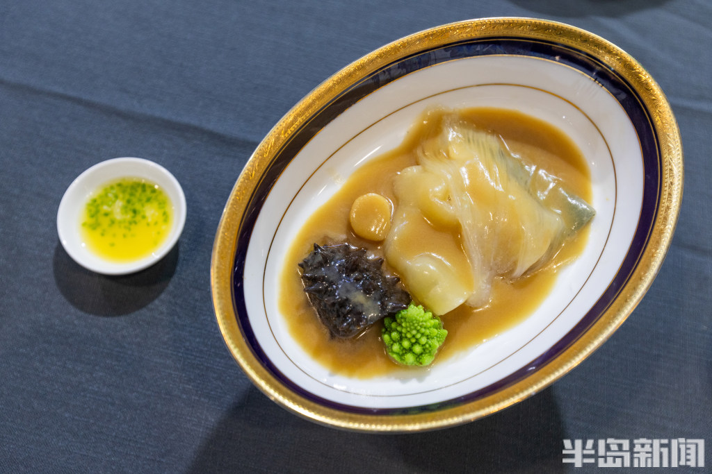 “没想到海鲜还可以做出这么多的花样!”面对琳琅满目的海洋主题特色菜品,一些观众直呼看得过瘾!双椒野生大带鱼、葱油汁八带、鹅肝烧辽海参……一道道颇具海滨地域特色的地道美食经过精湛的烹饪技艺后,呈现在观众们面前,让人们瞧着就想流口水。而当黄金翡翠胶东鲍、酒香红椒油果虾这样的菜名出现在观众们的视野里时,人们又不禁赞叹起一道道美食“芳名”的魅力无穷。